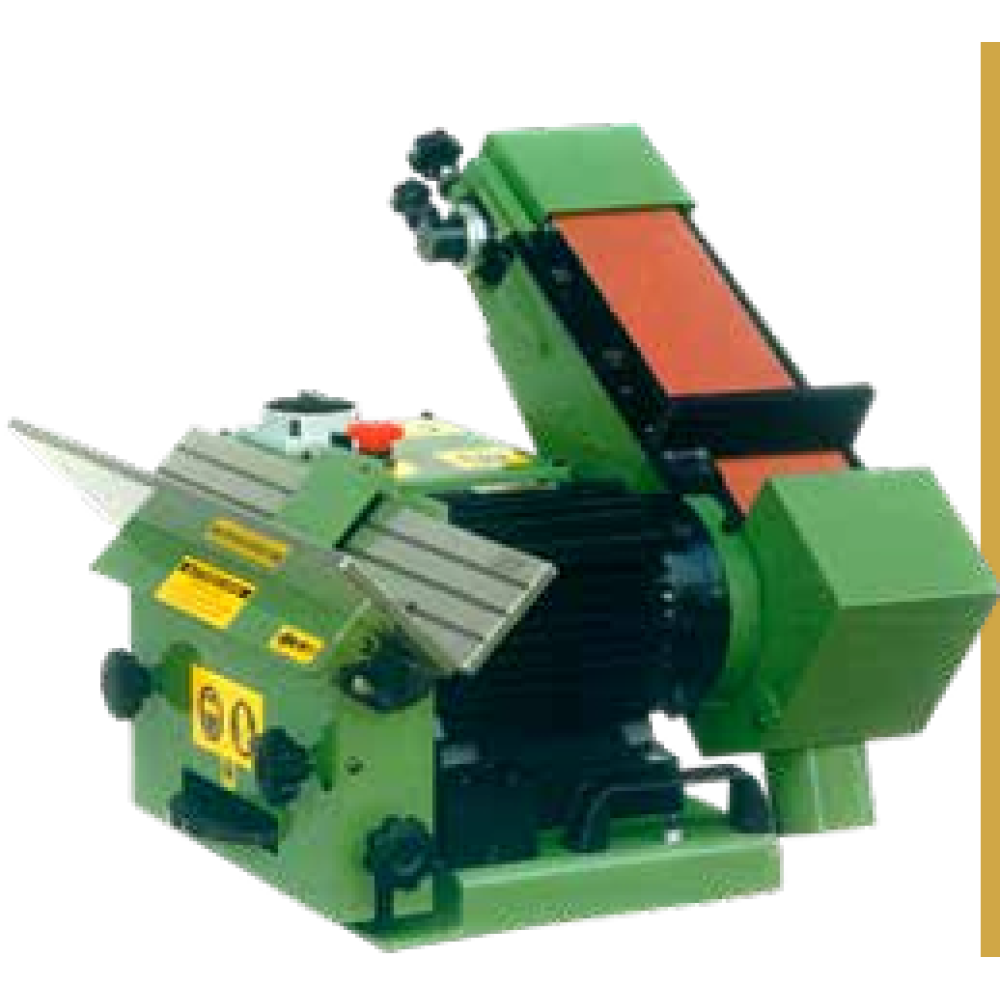 Levigatrice combinata con nastro e smussatrice adatta per smussature esterne lineari di elementi di medie-piccole dimensioni.