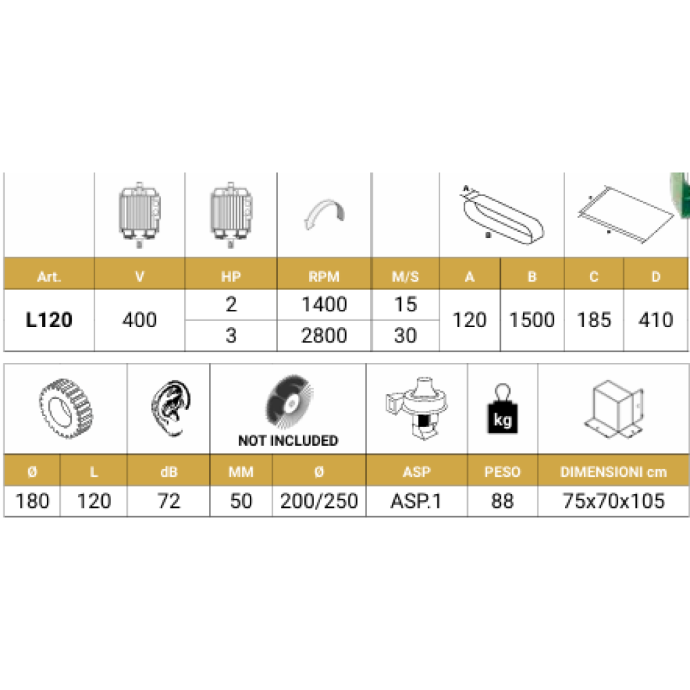 LEVIGATRICE A NASTRO da 1500x120 ORIENTABILE TRIFASE,NEBES ( EX APM ) MOD. L120