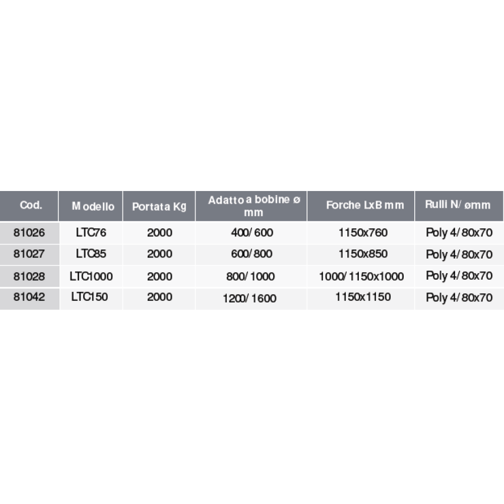 TRANSPALLET MANUALI PORTABOBINE LEVANTE SERIE LTC