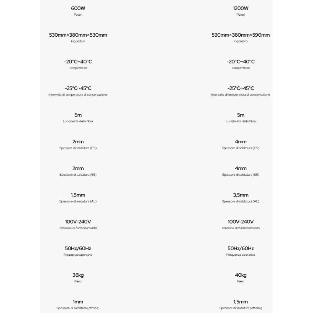 POTENZA GENERATORE LASER BodorPower, disponibili da 600W a 1200W,