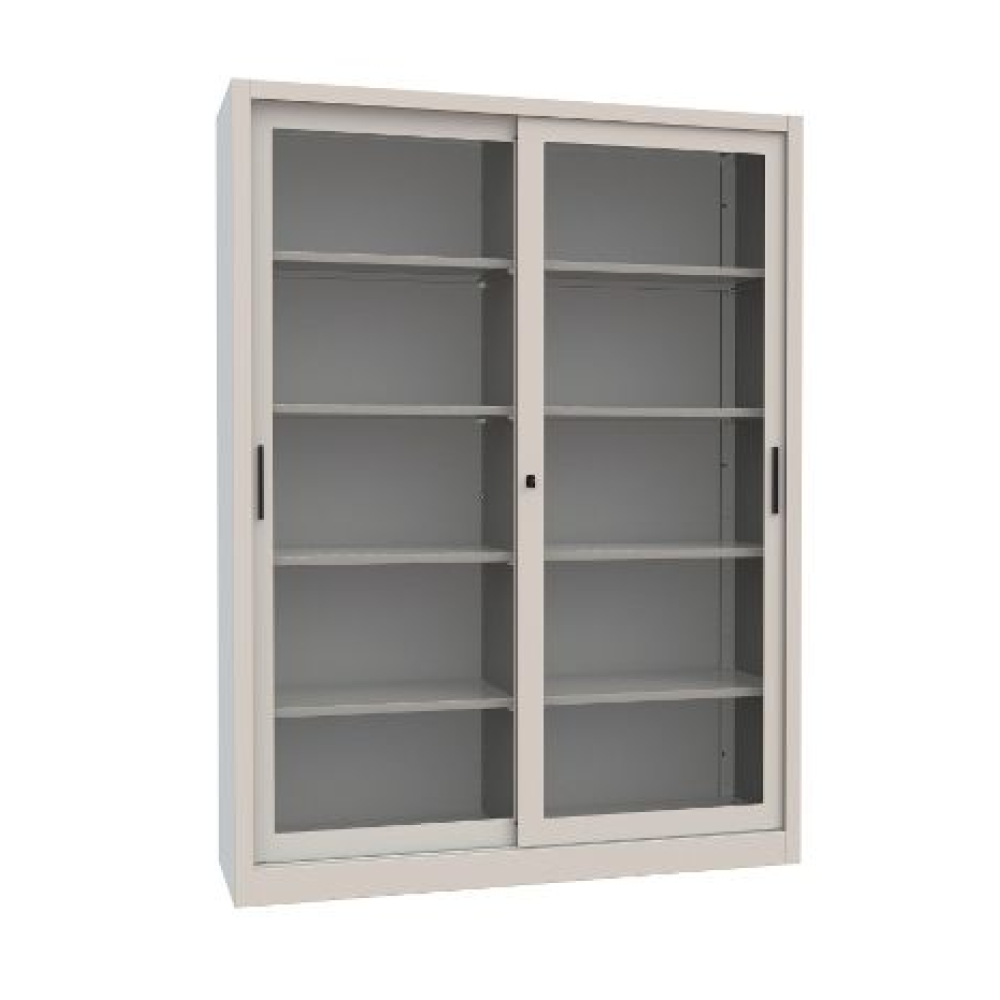 ARMADIO UFFICIO METALLICO SMONTATO CON RIPIANI CON ANTE SCORREVOLI IN VETRO TEMPERATO ARMET LINEA SCHEDO