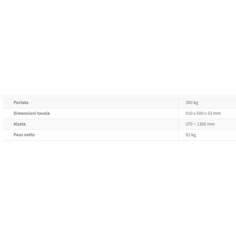 A DOPPIO PANTOGRAFO CON MANIGLIA FISSA, DOTATO DI SISTEMA DI BLOCCAGGIO MECCANICO DELLA PIATTAFORMA E RUOTE PIVOTANTI CON FRENO.