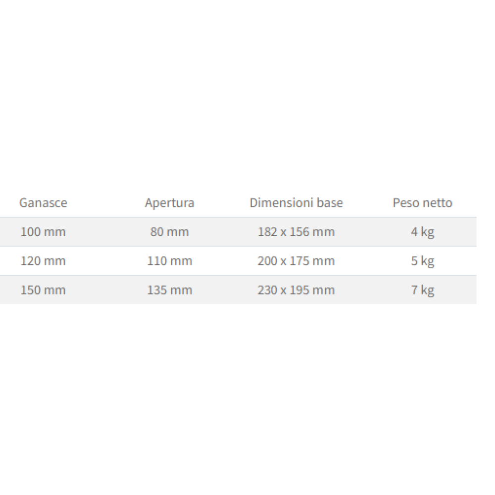 MORSA DI PRECISIONE FERVI MO12/100, IN ACCIAIO TEMPERATO E RETTIFICATO CON GARANZIA. DATI TECNIC..