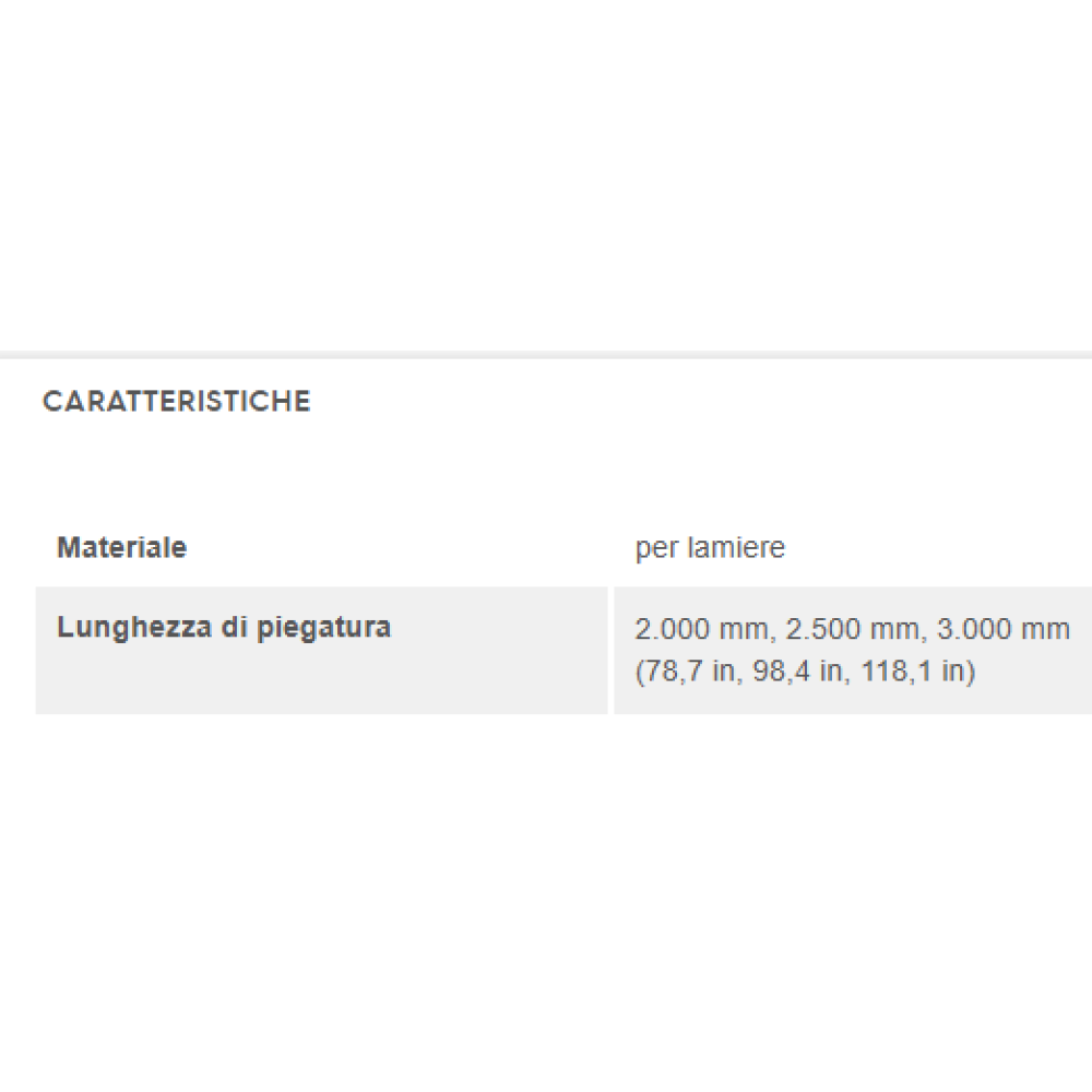 (Lunghezza di lavoro) 2000 mm - 2500 mm 3000 mm (Capacità di piegatura) 1,2 mm