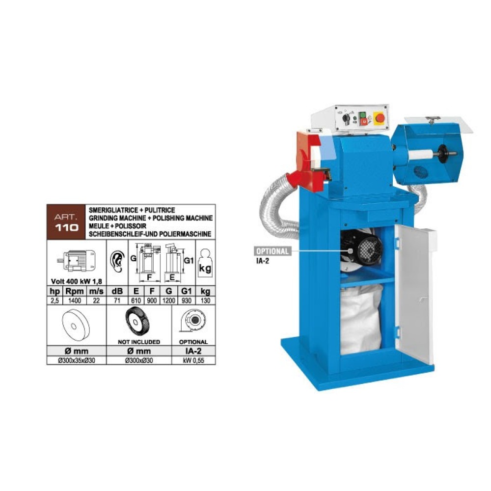 SMERIGLIATRICE CON BASAMENTO ACETI ART 110 DIAM.300X35XDIAM.30mm, KW 1,8 (HP 2,5)Rpm 1400, N.1 MOLA INCLUSA+PULITRICE DIAM.300mm, SPAZZOLA ESCLUSA, CON GARANZIA.