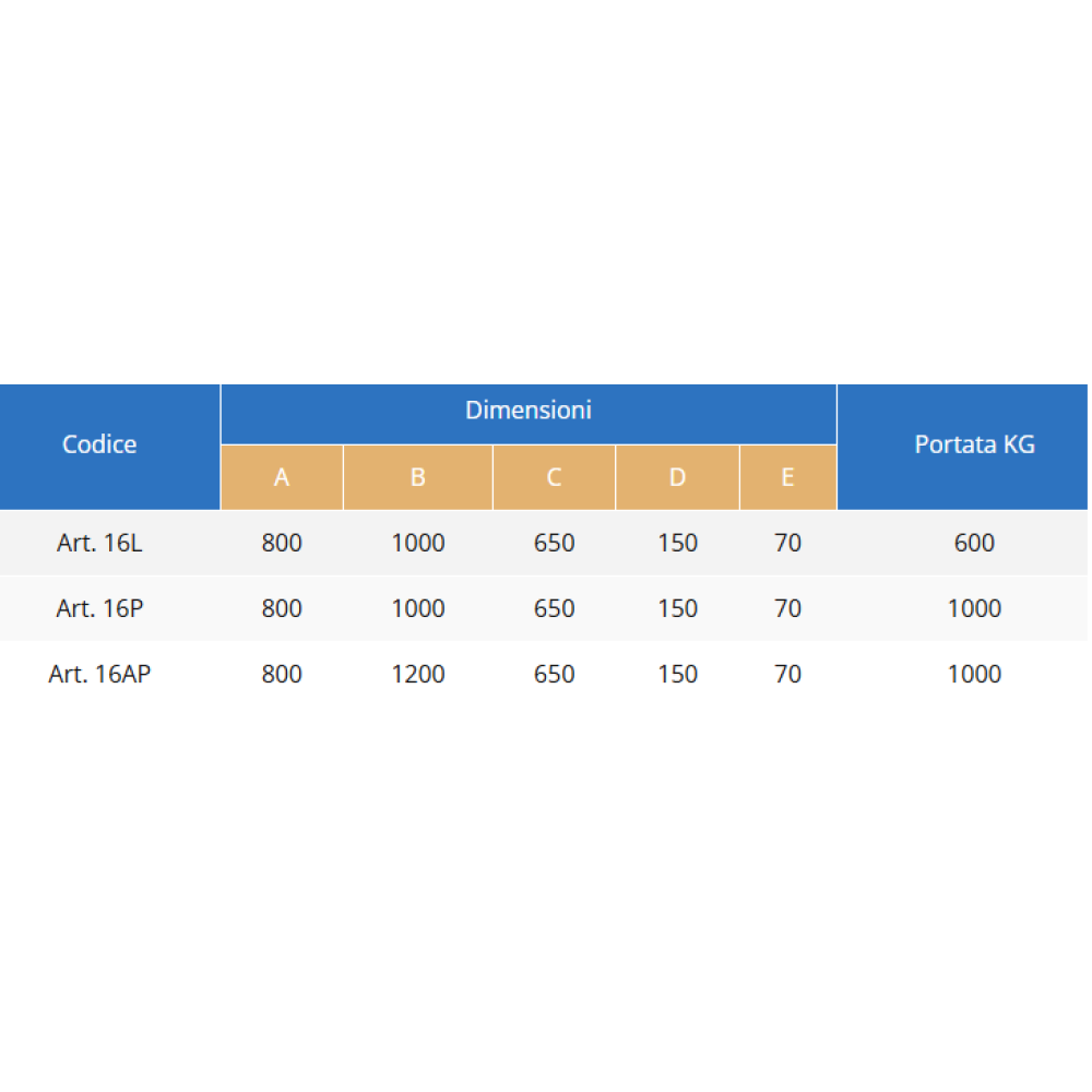 - Codice Prodotto: ART 16L/16P/16AP