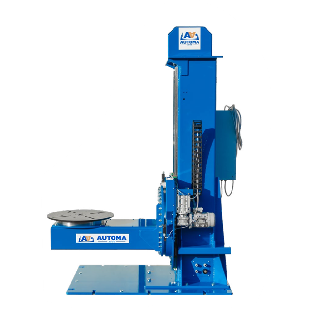 Rotazione con motore in corrente alternata, con inverter (I) riduttore a vite senza fine e ralla a sfere. 3 assi. Impianto elettrico secondo norme CEI EN-60204-1. I: inverter. Pedale (marcia – arresto) con cavo mt. 5. Pulsantiera marcia arresto, con cavo mt. 5.