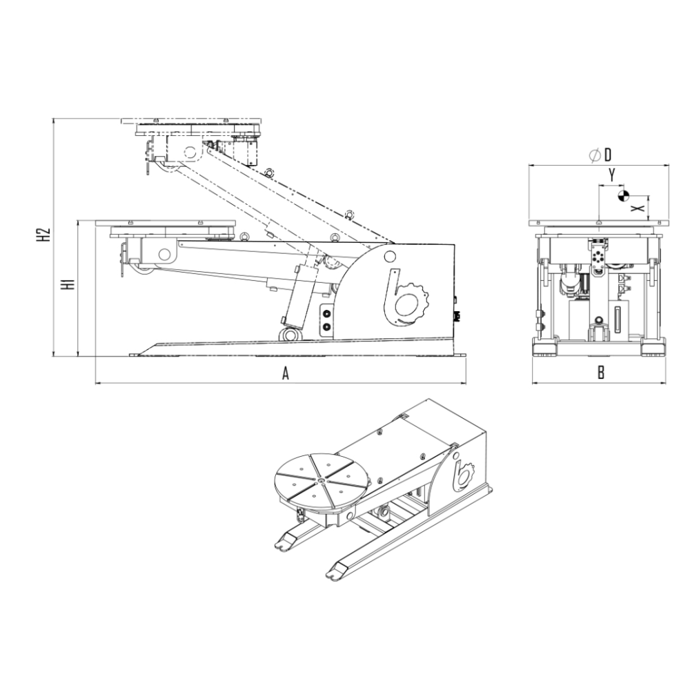POSIZIONATORE A TAVOLA ROTANTE IDRAULICO ELEVABILE BIREL MOD:BHP 050, 075, 1, 1.5, 2, 3.5, 5, 8, 10 TON