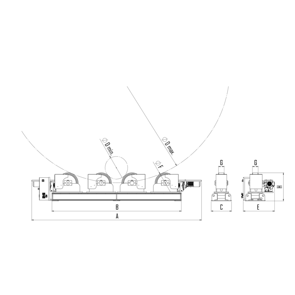 I rotatori a tubo modello BCR sono utilizzati per ruotare e eseguire la saldatura circolare di parti cilindriche, come serbatoi, recipienti a pressione, tubi a torre, caldaie, depositi, reattori, depositi, barili di combustibile, energia eolica, petrolchimica, tubazioni, settore cantieristico, ecc.