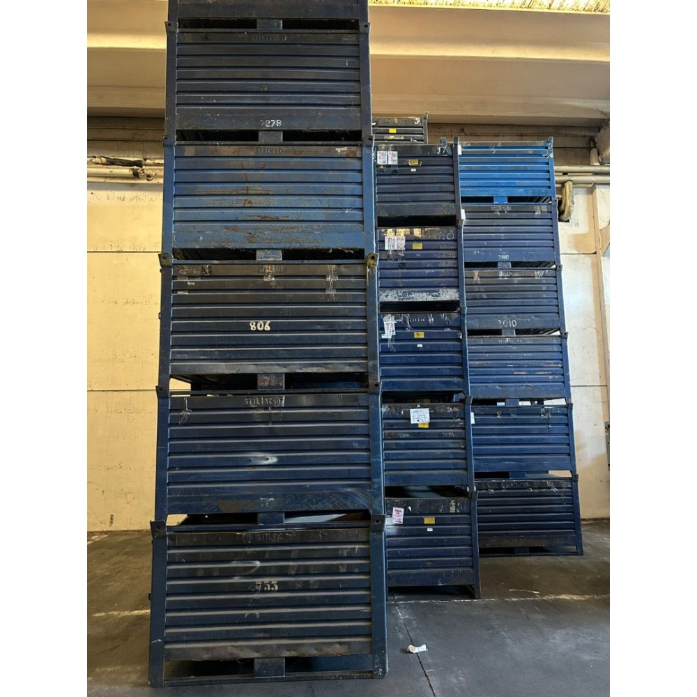 CONTENITORI usati IN FERRO CON SLITTA ANTIRIBALTAMENTO 650X380H350+100PIEDE+50H ORECCHIE SOVRAPPOSIZIONE