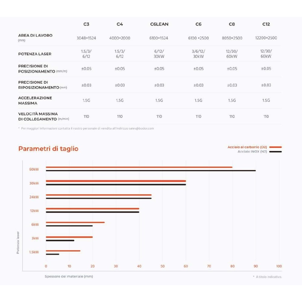 L'area di taglio massima raggiunge fino a 12000 x 2500 mm, adatta per una varietà di opzioni di taglio.