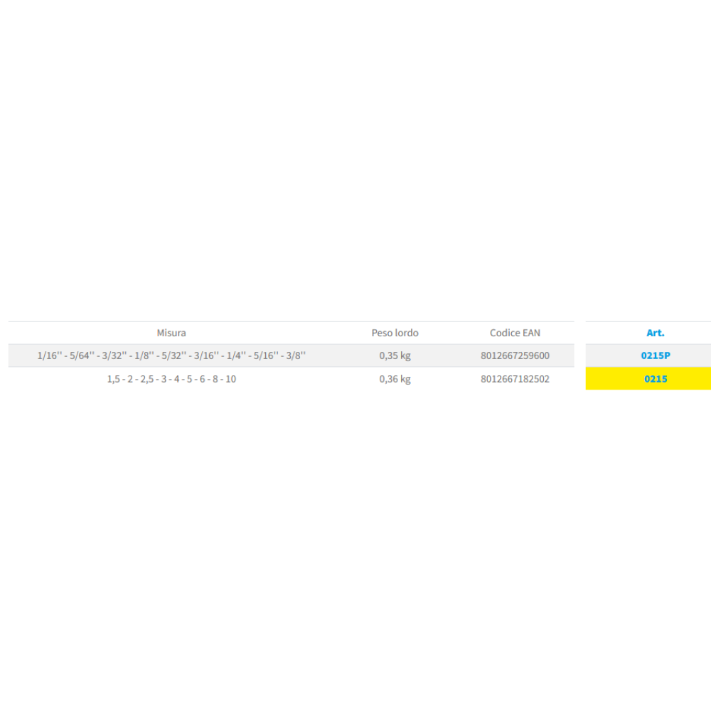 SERIE CHIAVE ESAGONALE LUNGA CON PUNTA SFERICA 0215X